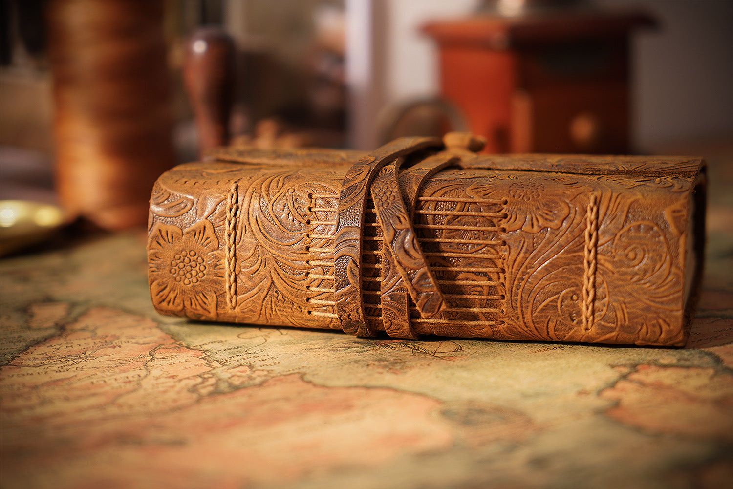 Its cover, carved with delicate floral patterns, whispers of old-world craftsmanship. The warm brown cowhide carries the scent of leather and the touch of tradition, while the wrap-around strap promises to guard your thoughts and sketches like treasured secrets. Whether you’re penning your daily reflections, mapping your next adventure, or gifting a piece of timeless beauty, this journal is more than paper and leather — it’s a companion for your stories.