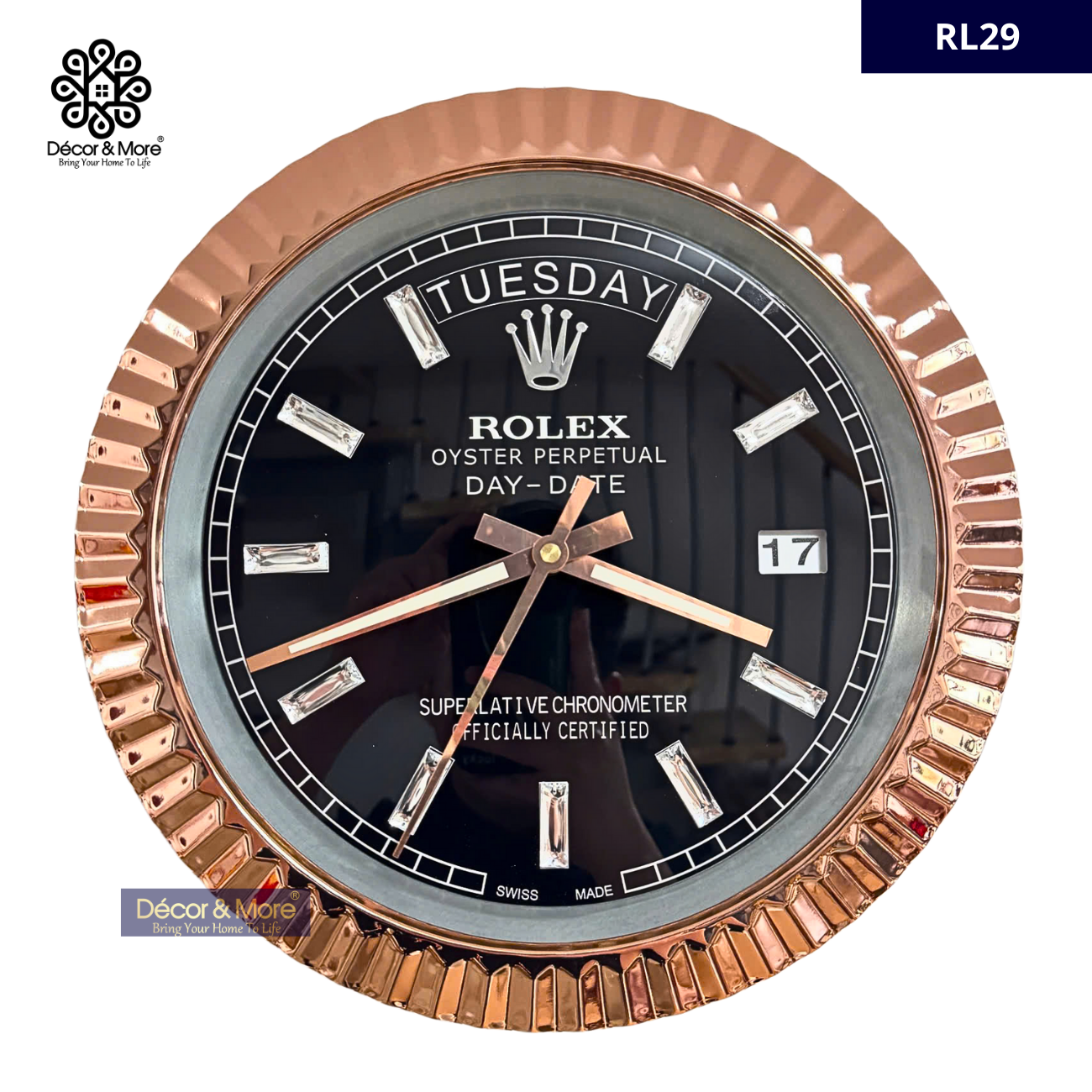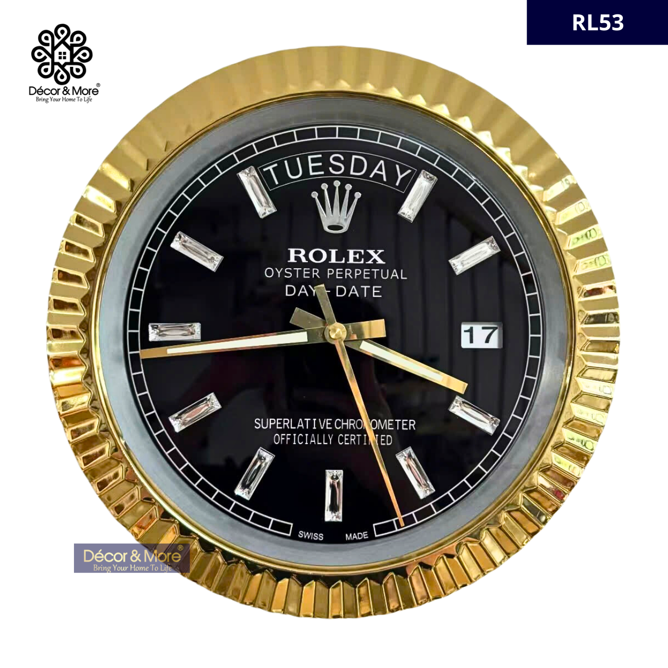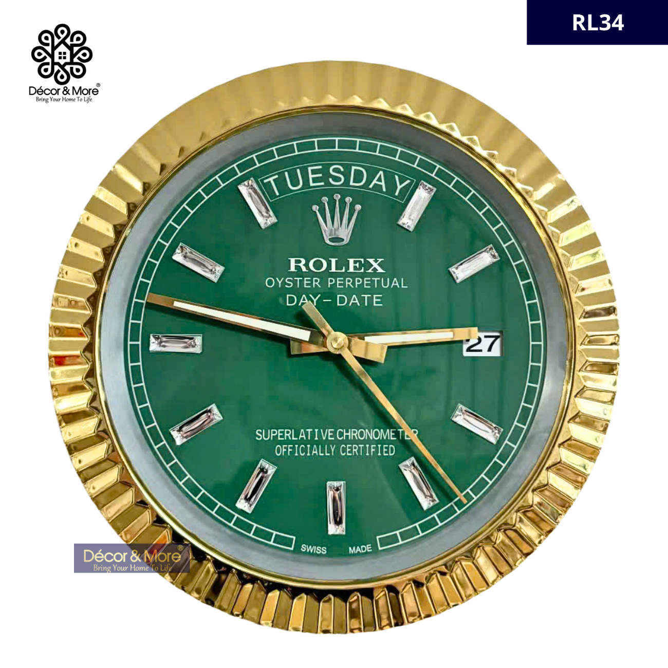 Décor & More • Day Date Collection - Fluted Bezel - Luxury Wall Clock Rolex* Decoration