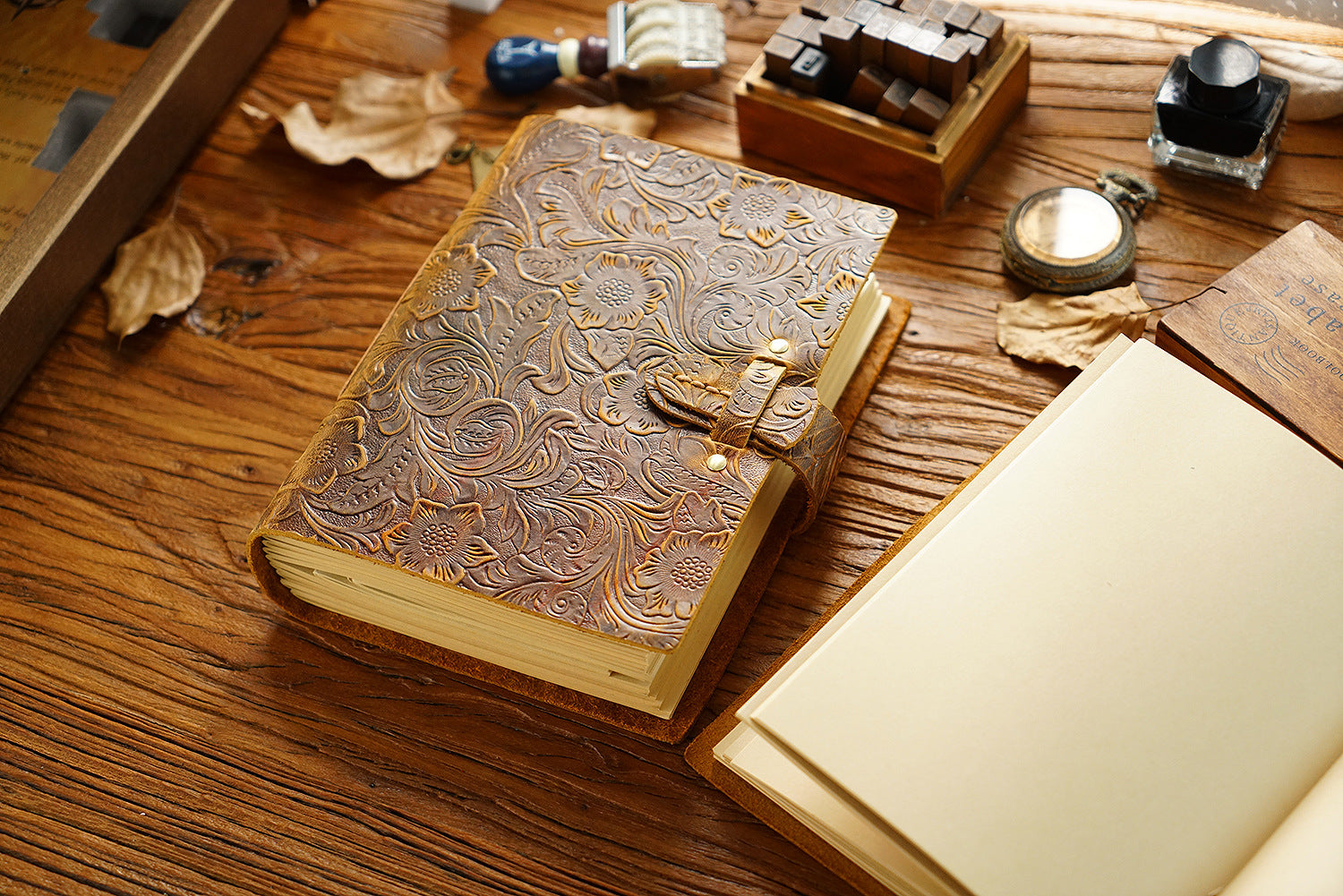 From the first cut of leather to the final hand-sewn stitch, every NO003 journal is the result of meticulous handmade craftsmanship. The scent of full-grain cowhide, the choice between smooth or floral-embossed leather, and its simple yet refined buckle closure create a timeless balance between functionality and elegance. Designed for both work and leisure, this journal is as practical as it is beautiful – ready to accompany your meetings, travel, and personal reflections.