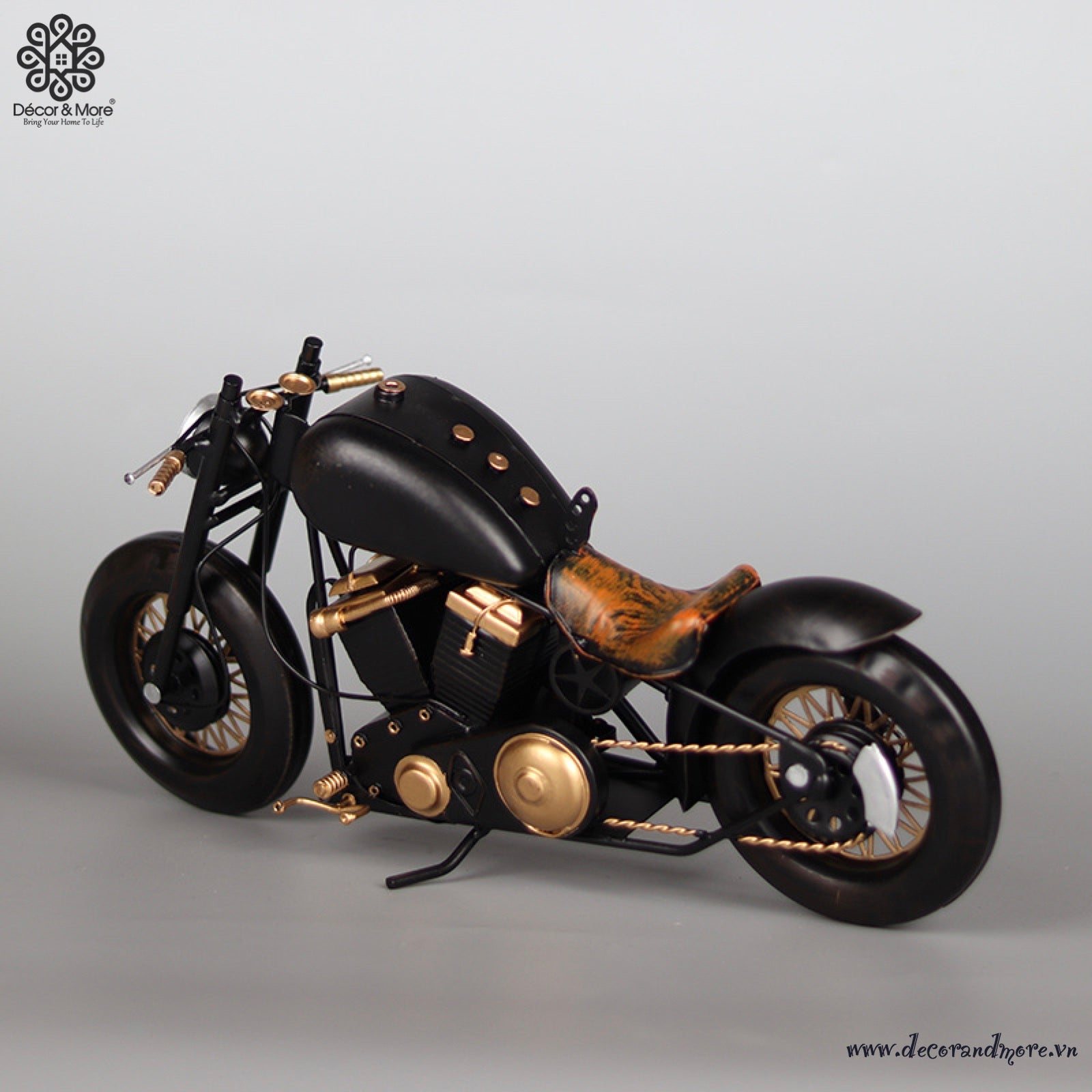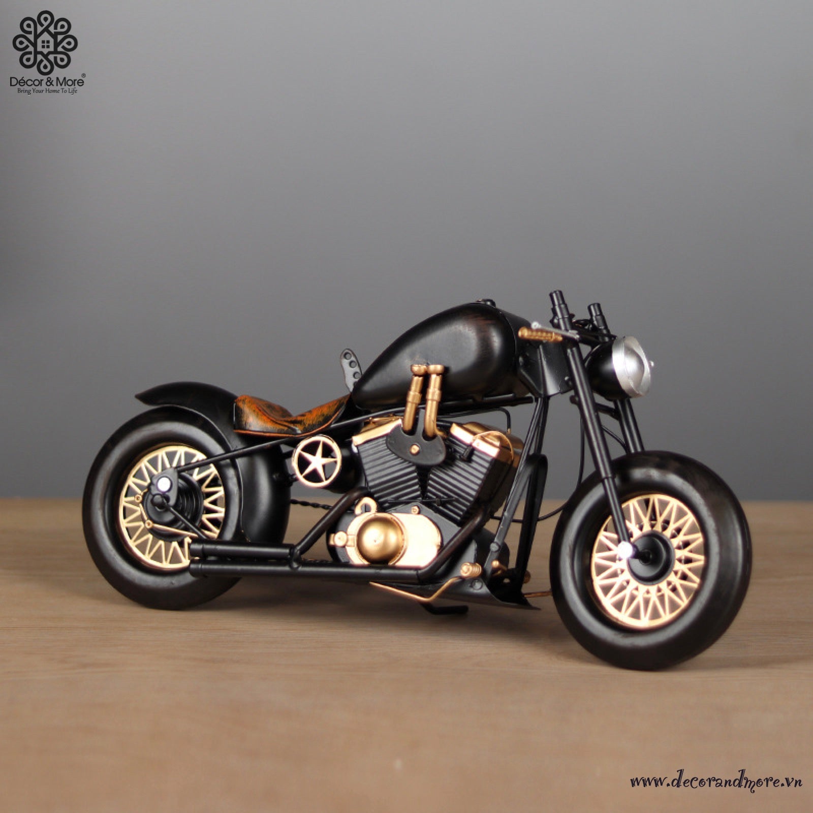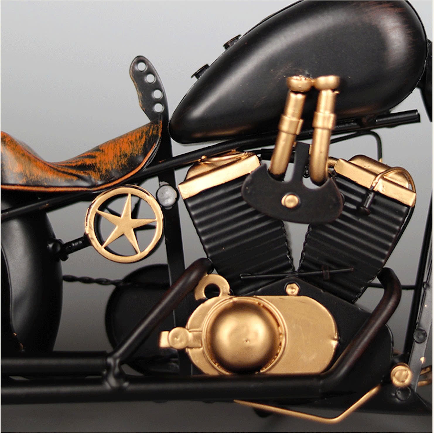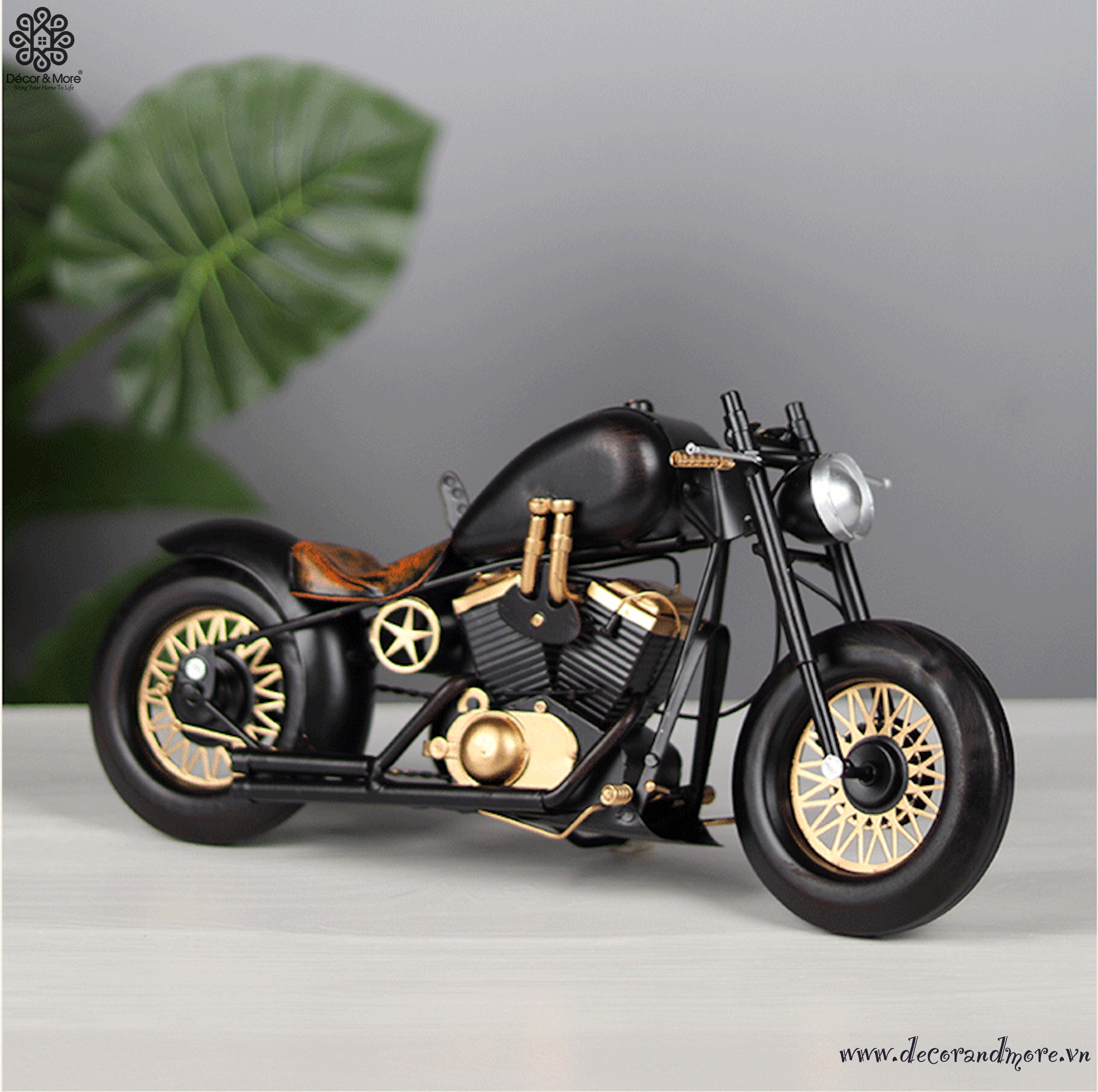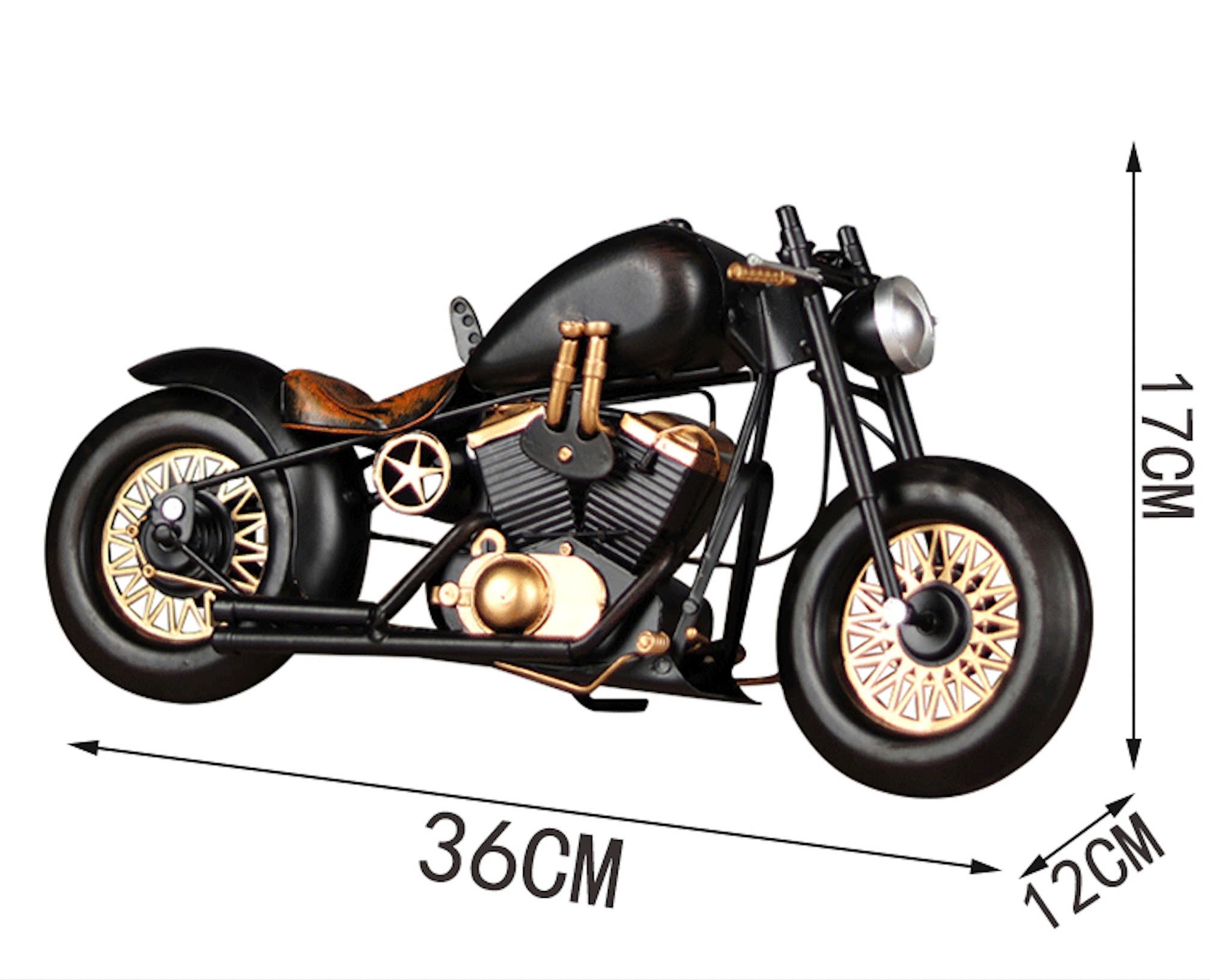 The Harley Davidson Retro Motorcycle Model XE068 embodies a strong sense of nostalgia with its design inspired by America’s iconic cruiser bikes. The body is crafted from sturdy metal, finished with hand-painted vintage effects, and detailed with signature elements such as high handlebars, a rounded fuel tank, long exhaust pipes, and a dark leather saddle. Its muted tones combined with distressed markings create a rugged, timeless look – a true symbol of freedom and individuality on every road. This piece is perfect for display on a desk, in a café, studio, or as a unique gift for motorcycle enthusiasts and lovers of the retro American style.